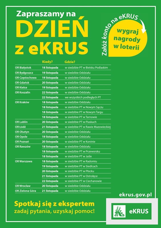 W dniach 18-22 listopada 2024 r. w wybranych oddziałach regionalnych oraz placówkach terenowych Kasy Rolniczego Ubezpieczenia Społecznego (KRUS) odbędzie się „Dzień z eKRUS”. Inicjatywa skierowana jest do rolników ubezpieczonych w KRUS i ma na celu ułatwienie dostępu do cyfrowych narzędzi, które w dużym stopniu usprawnią zarządzanie sprawami ubezpieczeniowymi. W trakcie wydarzenia rolnicy będą mieli okazję założyć bezpłatne konto na portalu eKRUS z pomocą eksperta, który wyjaśni szczegóły funkcjonowania portalu i odpowie na wszystkie pytania.
